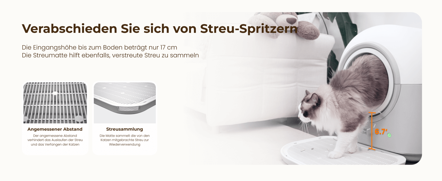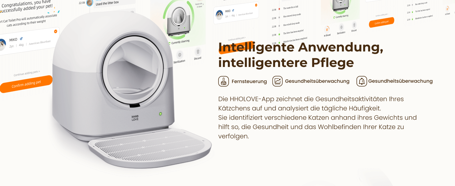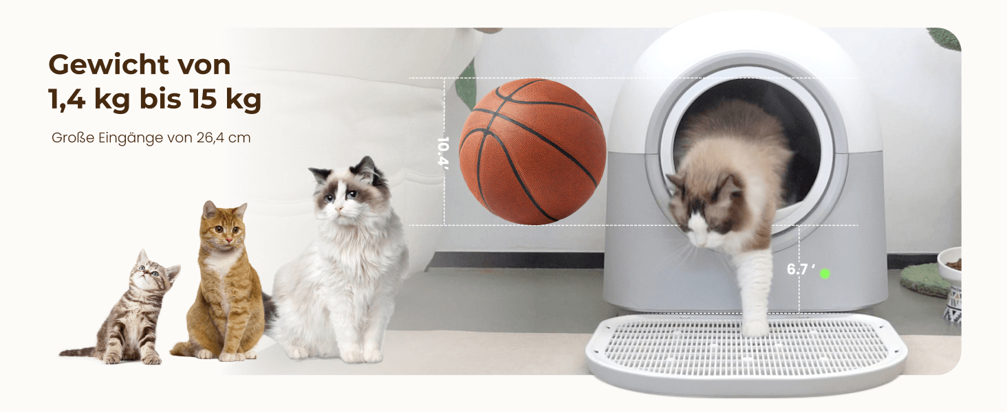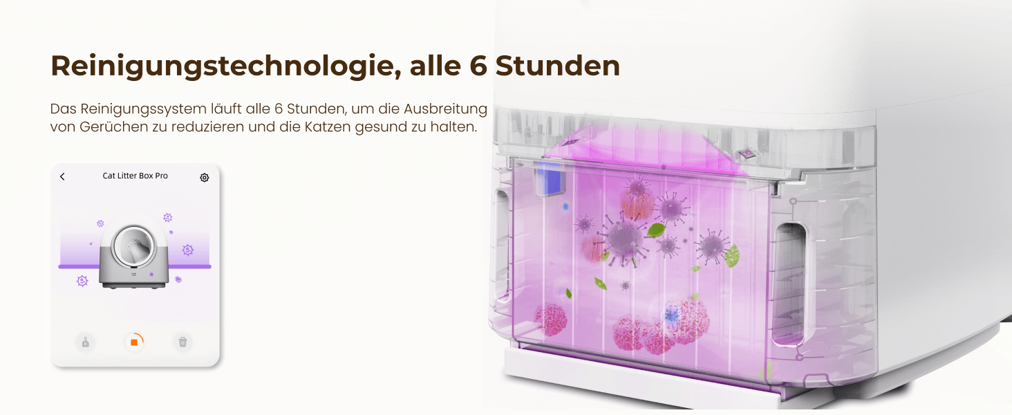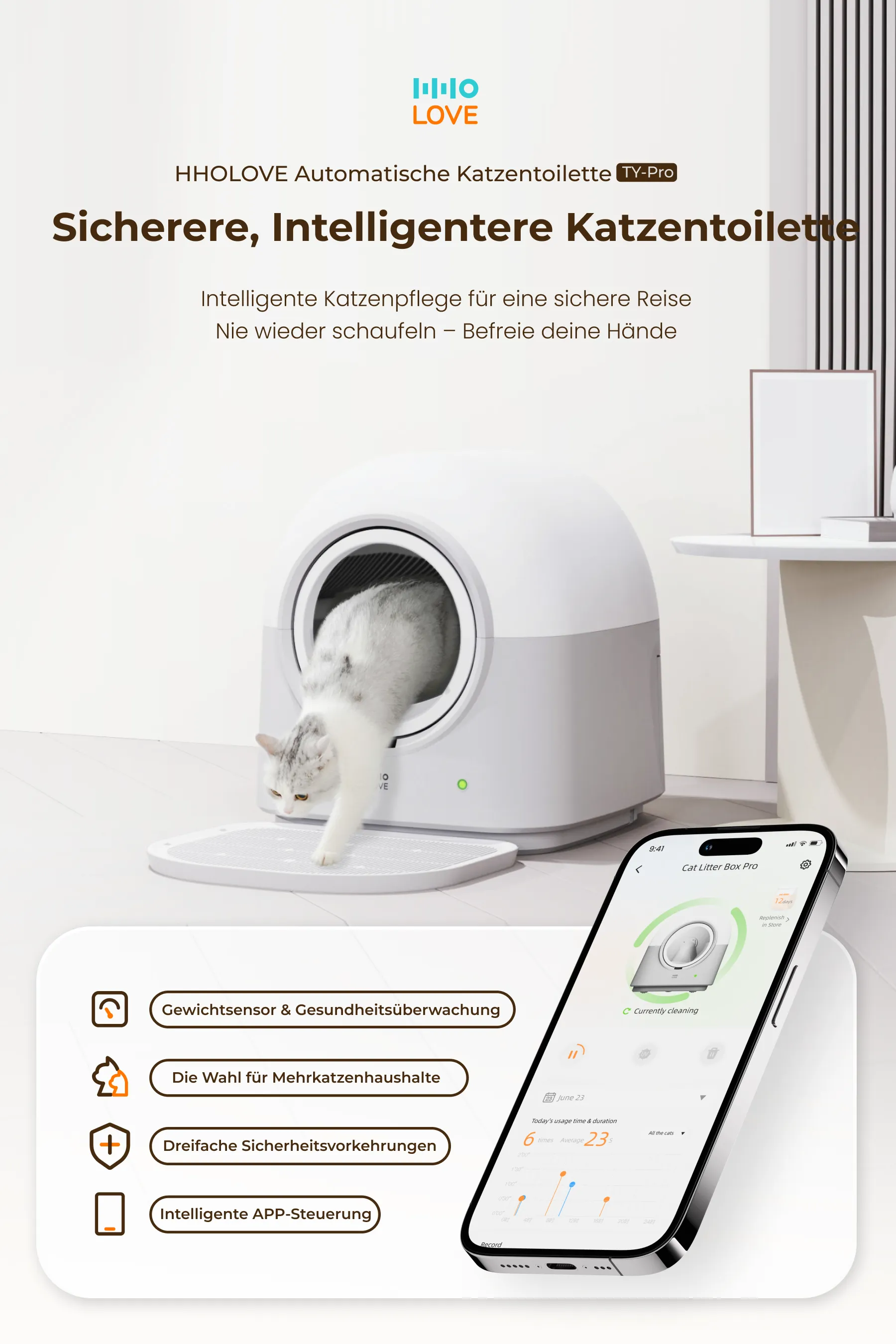 Ich besitze es jetzt seit einem Monat und bin sehr zufrieden damit. Ich habe in der Vergangenheit kleine Roboter ausprobiert und musste sie zurückgeben, weil meine Katze zu groß dafür war. Jahre später gebe ich dieser unbekannten Marke eine Chance. Es funktioniert einwandfrei! Die App überwacht, wie oft meine Katze die Katzentoilette benutzt, wie lange es dauert, wann der Abfallbehälter voll ist und wann es Zeit ist, die Streu zu wechseln. Ich benutze billige leichte Streu von Walmart und mag es, dass ich mit der App die Zykluszeit ändern kann, damit die Streu genug Zeit hat, sich zu verfestigen, damit sie nicht an anderen Oberflächen kleben bleibt. Meine Katze ist ein Gräber und hinterlässt großen Abfall. Manchmal kann er 2 Minuten darin sein. Ich hatte einige Probleme damit, dass die Streu am Boden klebte, was jedoch kein Problem ist, da es sich alle zwei Wochen leicht reinigen lässt, wenn es Zeit ist, die Streu zu wechseln. Wieder benutze ich günstige leichte Streu von Walmart. Ich bin sicher, dass Premium-Streu besser funktioniert. Ich konnte das Problem beheben, indem ich alle Innenflächen mit einem trockenen, lebensmittelgeeigneten Silikonspray von CRC besprüht habe. Die mitgelieferten Beutel mit Kordelzug sind ein Plus. Ich weiß, dass man auch andere Beutel verwenden kann (wie Walmart-Einkaufstüten), aber sie machen es so einfach, warum ändern? Schließlich habe ich diese automatische Katzentoilette gekauft, um mein Leben zu erleichtern. Meine Katze benutzt die Katzentoilette drei- bis viermal am Tag und hinterlässt viel Abfall. Die App lässt mich wissen, wann der Abfallbehälter voll ist, und das dauert in der Regel 9 Tage. Normalerweise hinterlasse ich keine Bewertungen, es sei denn, ich finde das Produkt hervorragend oder es muss vor einem Kauf gewarnt werden. Dies ist etwas, worauf man stolz sein kann. Du wirst deine Freunde beeindrucken, wenn du ihnen die Funktionalität der Katzentoilette mit der App zeigst. Jeder, dem ich das gezeigt habe und der eine Wohnungskatze hat, hat sich auch eine gekauft. Außerdem habe ich gerade Beutel auf ihrer Website bestellt. Es gab Angebote und Rabatte, die ich nur auf ihrer Website nutzen konnte. Es war günstiger als der Preis auf Amazon. Sie behaupten, es gibt einen UV-Sanitizer. Du musst ihn in der App aktivieren, damit er automatisch läuft. Ich bin mir nicht sicher, weil ich keinen Glanz sehe, wenn ich ihn einschalte. Es gibt keine Anweisungen, wie man es ersetzt, und ich sehe auch keine zum Verkauf. Ich weiß nicht, ob es die Streu desinfiziert oder den Geruch im Abfallbehälter beseitigt. Ich schalte es manuell ein, wenn die Katze einen schlimmen Haufen hinterlassen hat. Ich weiß nicht, ob der Geruch einfach mit der Zeit verschwindet oder ob der Sanitizer es erledigt hat. Überraschenderweise riecht die Katzentoilette normalerweise nicht, selbst wenn der Abfallbehälter fast voll ist. Es sagt dir, dass du den Abfallbehälter leeren sollst, bevor er überläuft, um Schmieren zu vermeiden. Ich glaube, mit der Behandlung der lebensmitteltauglichen Silikonspraybehandlung werde ich es diesmal nicht auseinandernehmen müssen, um es nach vierzehn Tagen zu reinigen. Nichts bleibt an den Oberflächen haften. Die Katzentoilette ist ein gutes Produkt.