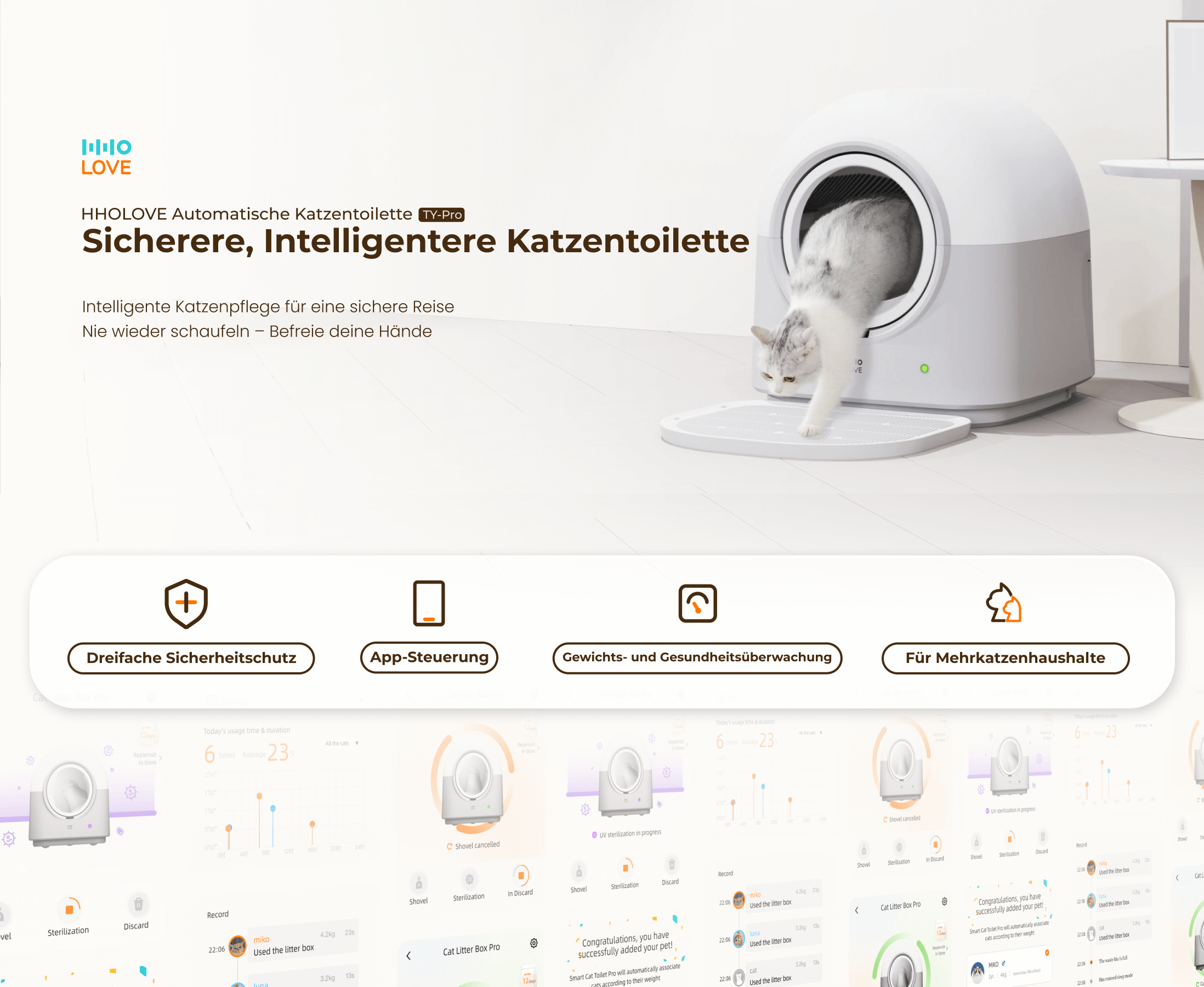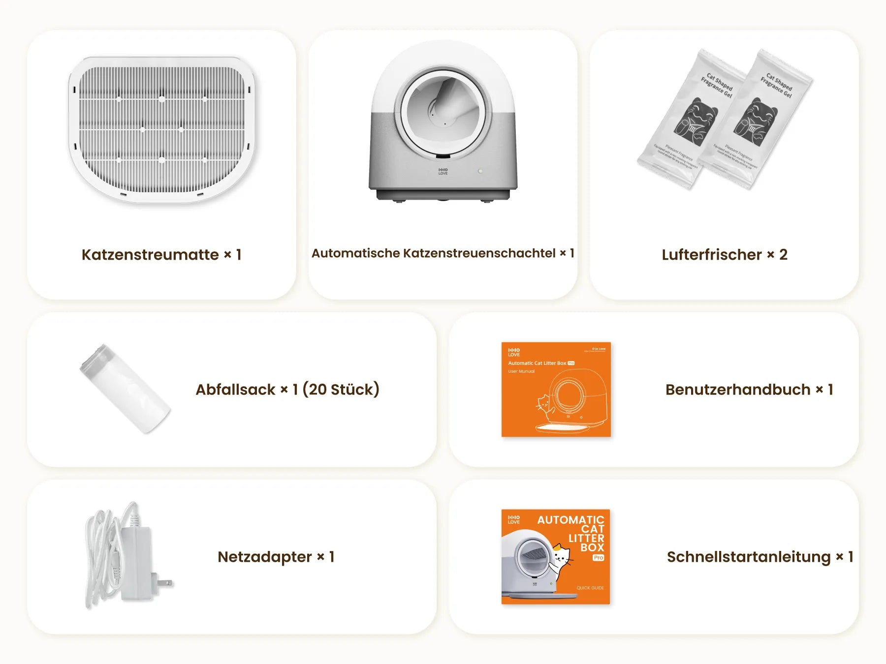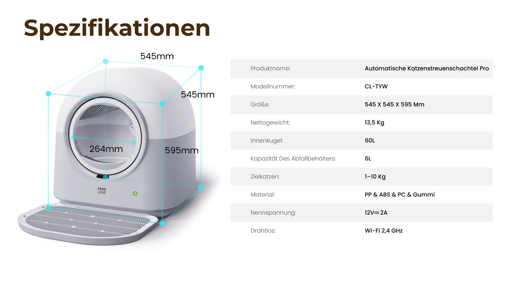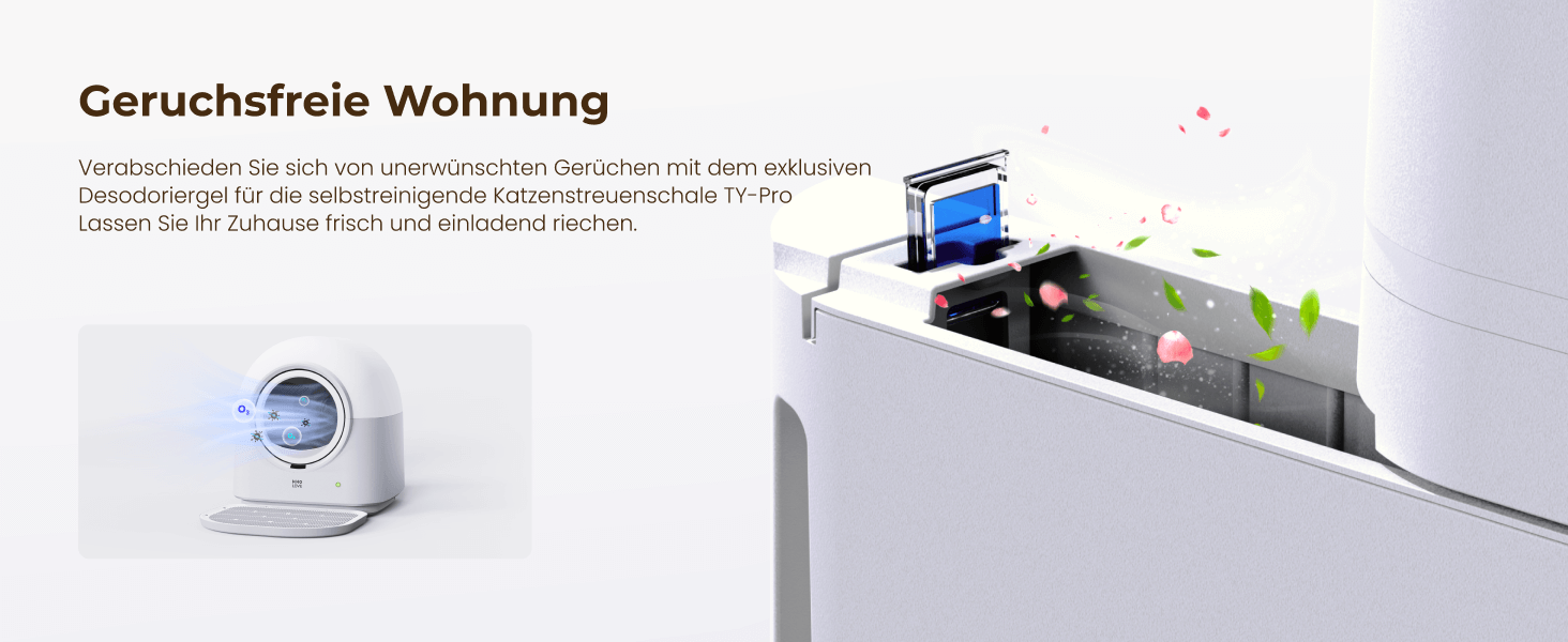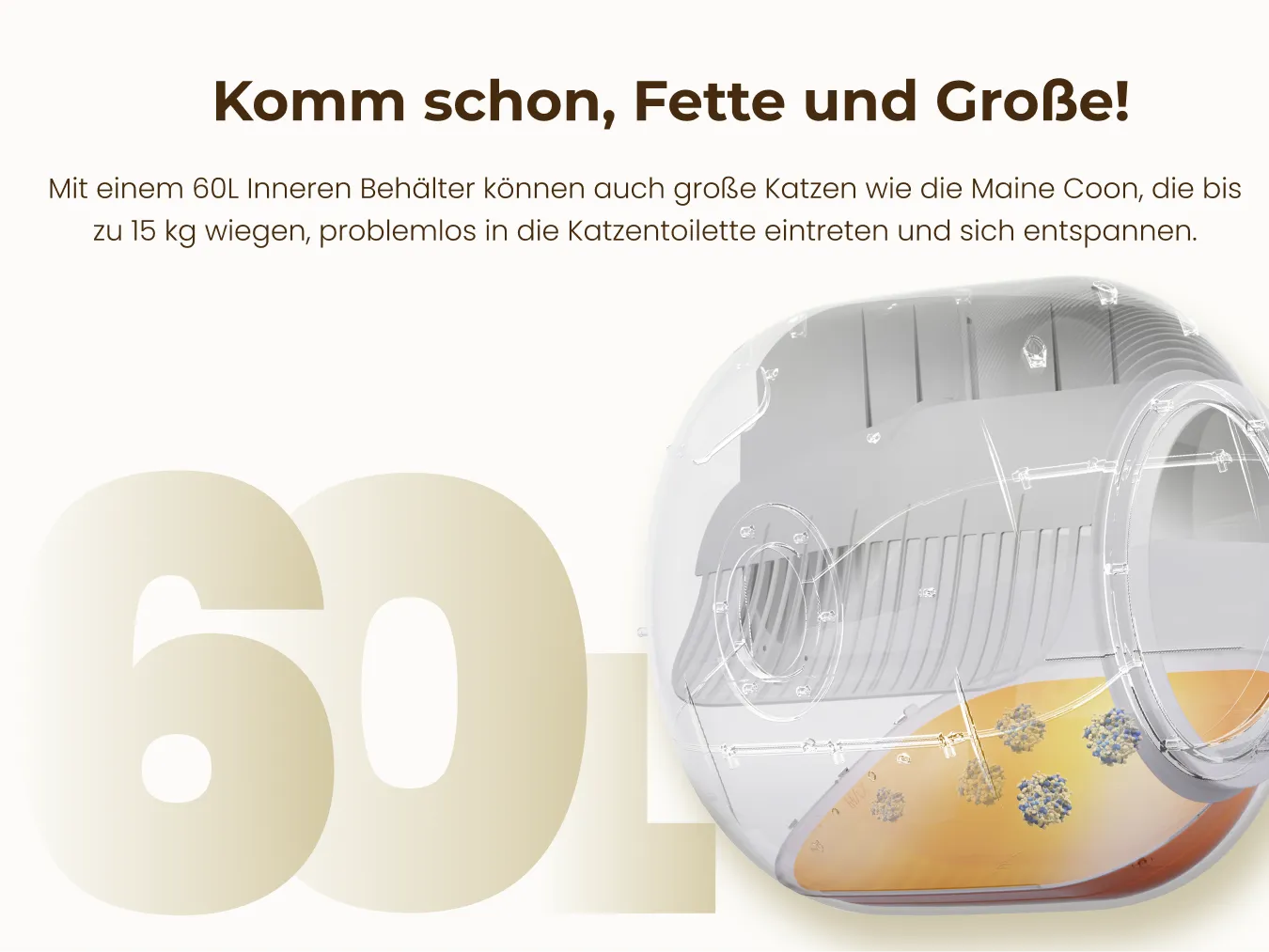 Ich besitze es jetzt seit einem Monat und bin sehr zufrieden damit. Ich habe in der Vergangenheit kleine Roboter ausprobiert und musste sie zurückgeben, weil meine Katze zu groß dafür war. Jahre später gebe ich dieser unbekannten Marke eine Chance. Es funktioniert einwandfrei! Die App überwacht, wie oft meine Katze die Katzentoilette benutzt, wie lange es dauert, wann der Abfallbehälter voll ist und wann es Zeit ist, die Streu zu wechseln. Ich benutze billige leichte Streu von Walmart und mag es, dass ich mit der App die Zykluszeit ändern kann, damit die Streu genug Zeit hat, sich zu verfestigen, damit sie nicht an anderen Oberflächen kleben bleibt. Meine Katze ist ein Gräber und hinterlässt großen Abfall. Manchmal kann er 2 Minuten darin sein. Ich hatte einige Probleme damit, dass die Streu am Boden klebte, was jedoch kein Problem ist, da es sich alle zwei Wochen leicht reinigen lässt, wenn es Zeit ist, die Streu zu wechseln. Wieder benutze ich günstige leichte Streu von Walmart. Ich bin sicher, dass Premium-Streu besser funktioniert. Ich konnte das Problem beheben, indem ich alle Innenflächen mit einem trockenen, lebensmittelgeeigneten Silikonspray von CRC besprüht habe. Die mitgelieferten Beutel mit Kordelzug sind ein Plus. Ich weiß, dass man auch andere Beutel verwenden kann (wie Walmart-Einkaufstüten), aber sie machen es so einfach, warum ändern? Schließlich habe ich diese automatische Katzentoilette gekauft, um mein Leben zu erleichtern. Meine Katze benutzt die Katzentoilette drei- bis viermal am Tag und hinterlässt viel Abfall. Die App lässt mich wissen, wann der Abfallbehälter voll ist, und das dauert in der Regel 9 Tage. Normalerweise hinterlasse ich keine Bewertungen, es sei denn, ich finde das Produkt hervorragend oder es muss vor einem Kauf gewarnt werden. Dies ist etwas, worauf man stolz sein kann. Du wirst deine Freunde beeindrucken, wenn du ihnen die Funktionalität der Katzentoilette mit der App zeigst. Jeder, dem ich das gezeigt habe und der eine Wohnungskatze hat, hat sich auch eine gekauft. Außerdem habe ich gerade Beutel auf ihrer Website bestellt. Es gab Angebote und Rabatte, die ich nur auf ihrer Website nutzen konnte. Es war günstiger als der Preis auf Amazon. Sie behaupten, es gibt einen UV-Sanitizer. Du musst ihn in der App aktivieren, damit er automatisch läuft. Ich bin mir nicht sicher, weil ich keinen Glanz sehe, wenn ich ihn einschalte. Es gibt keine Anweisungen, wie man es ersetzt, und ich sehe auch keine zum Verkauf. Ich weiß nicht, ob es die Streu desinfiziert oder den Geruch im Abfallbehälter beseitigt. Ich schalte es manuell ein, wenn die Katze einen schlimmen Haufen hinterlassen hat. Ich weiß nicht, ob der Geruch einfach mit der Zeit verschwindet oder ob der Sanitizer es erledigt hat. Überraschenderweise riecht die Katzentoilette normalerweise nicht, selbst wenn der Abfallbehälter fast voll ist. Es sagt dir, dass du den Abfallbehälter leeren sollst, bevor er überläuft, um Schmieren zu vermeiden. Ich glaube, mit der Behandlung der lebensmitteltauglichen Silikonspraybehandlung werde ich es diesmal nicht auseinandernehmen müssen, um es nach vierzehn Tagen zu reinigen. Nichts bleibt an den Oberflächen haften. Die Katzentoilette ist ein gutes Produkt.