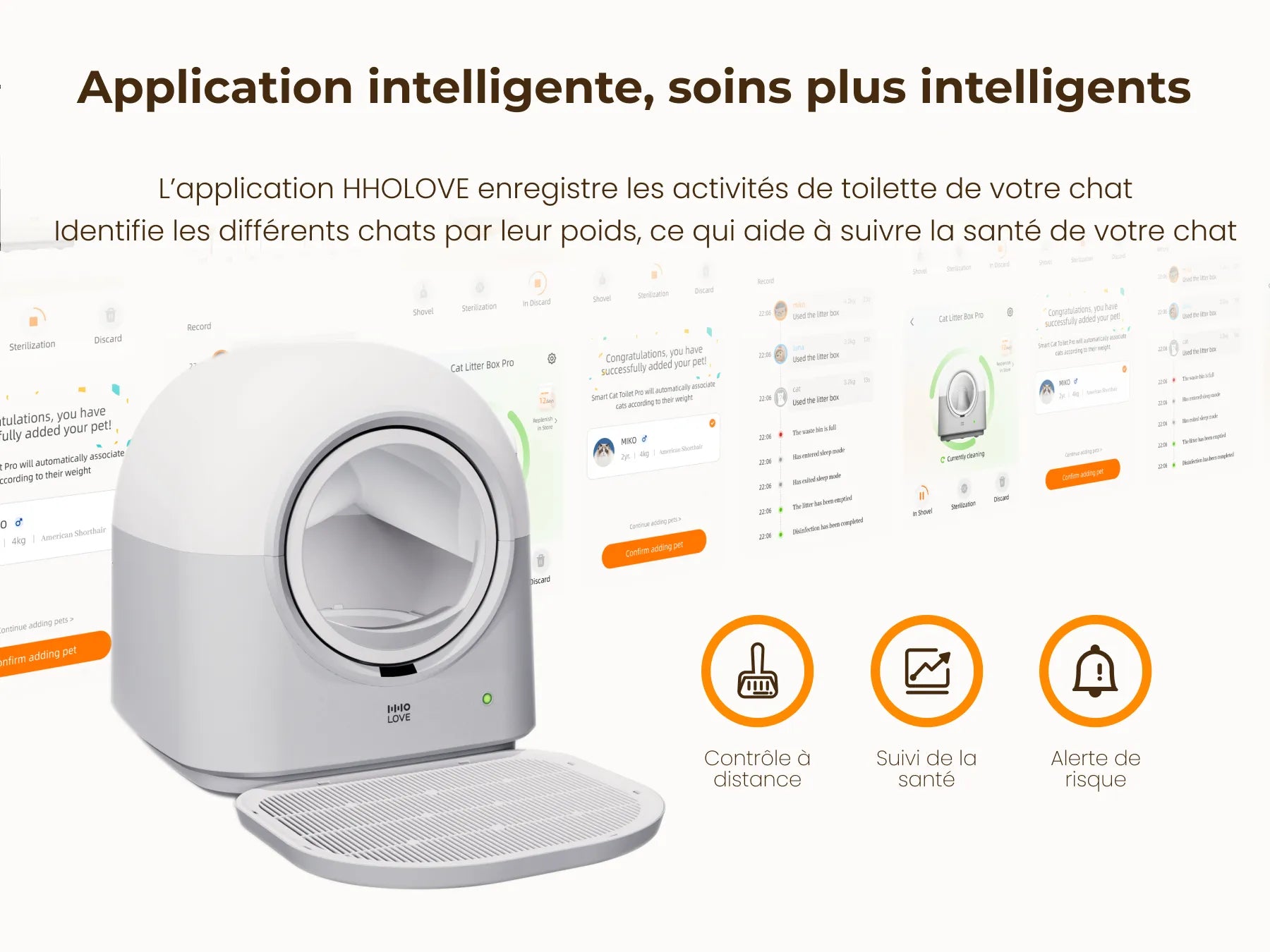 • Alertes intelligentes via l'application — Suivi de la litière et de l'entretien