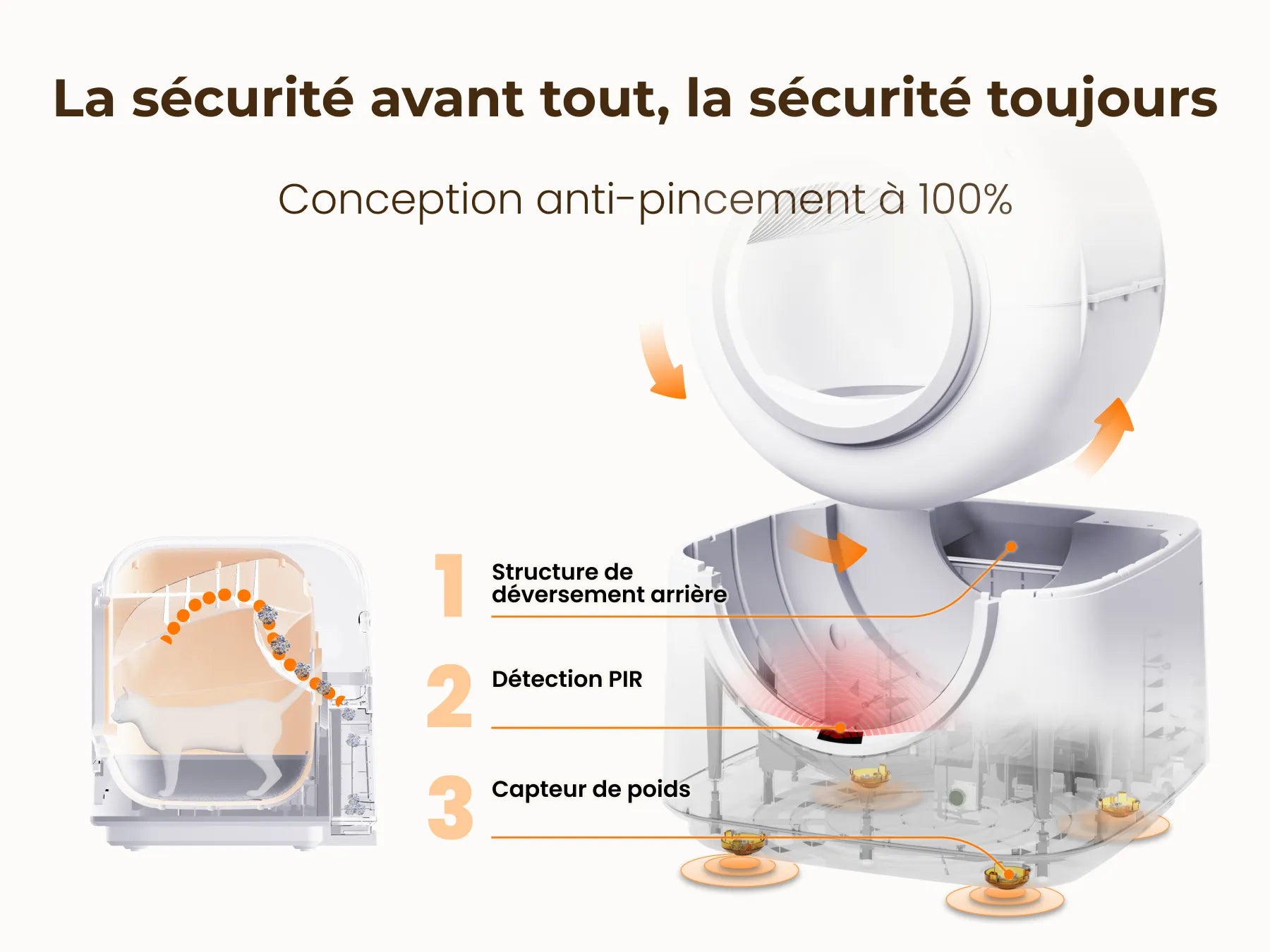 • Sûr et confortable — Anti-pincement, entrée basse