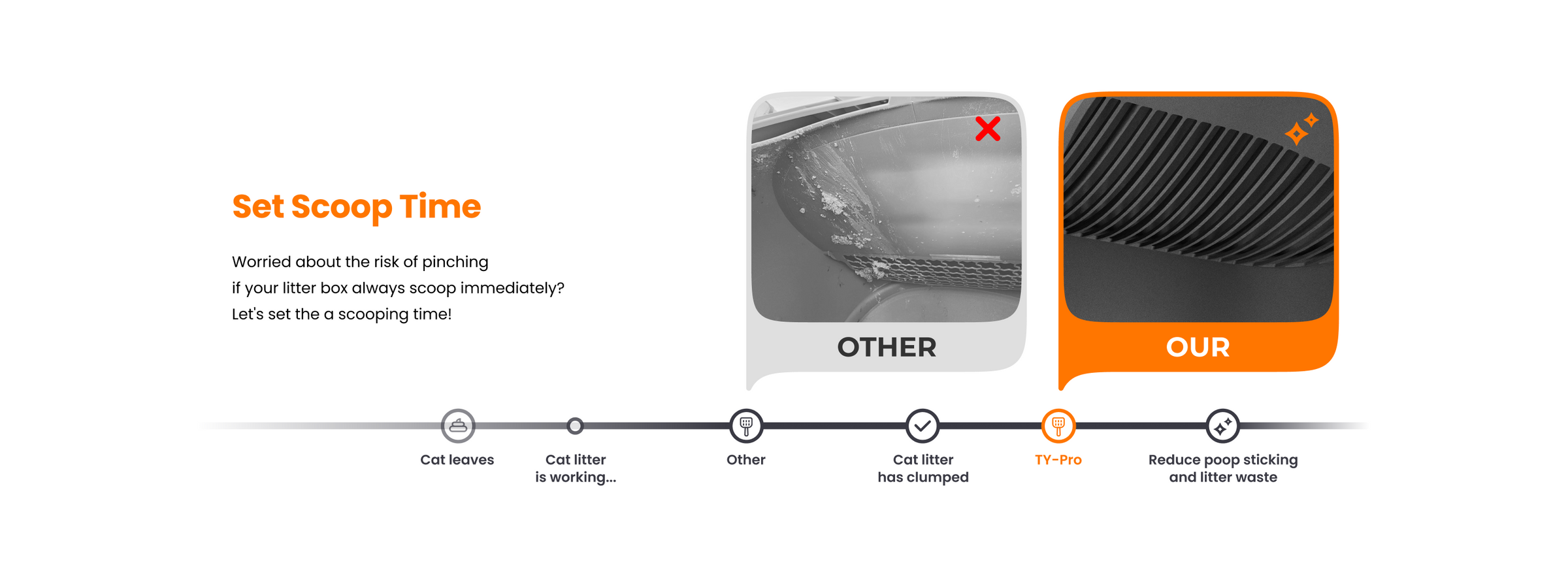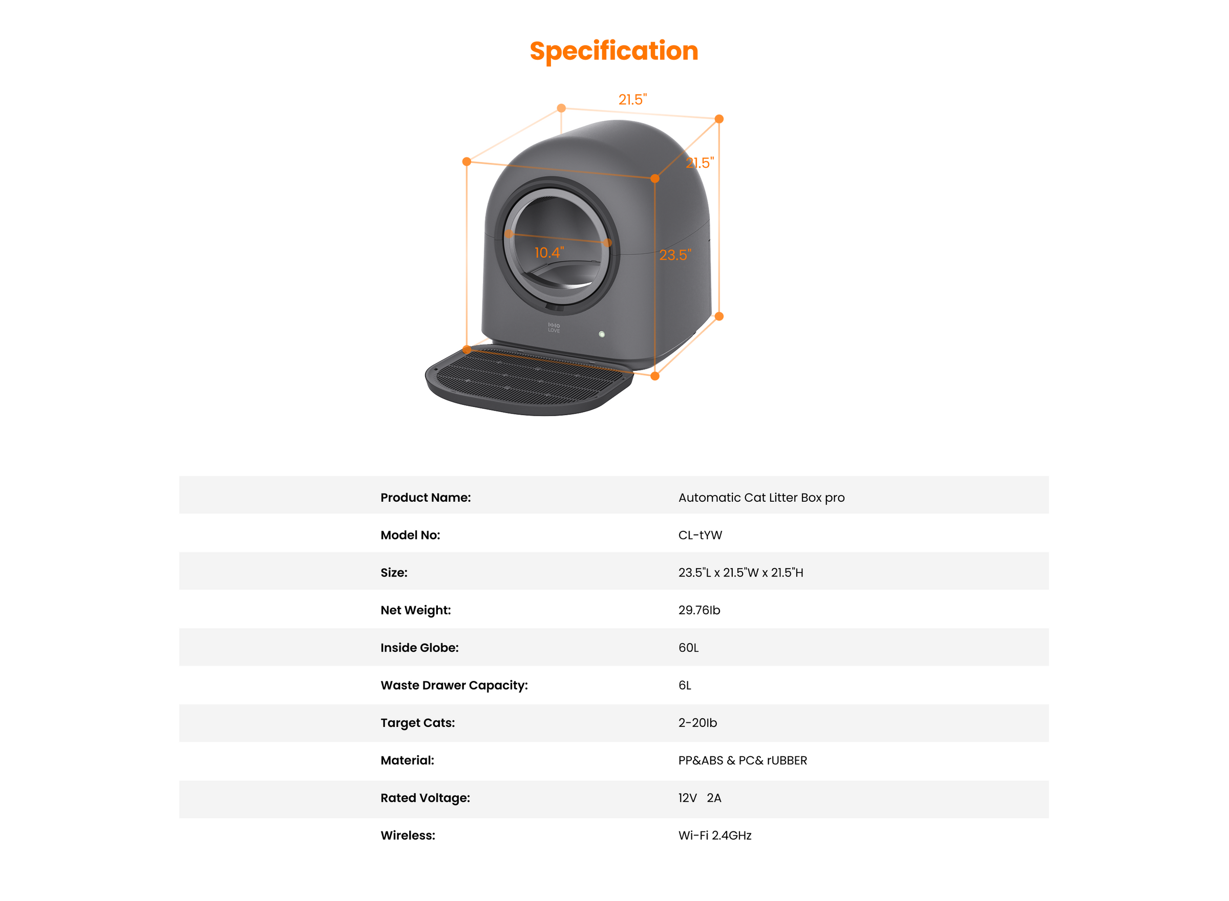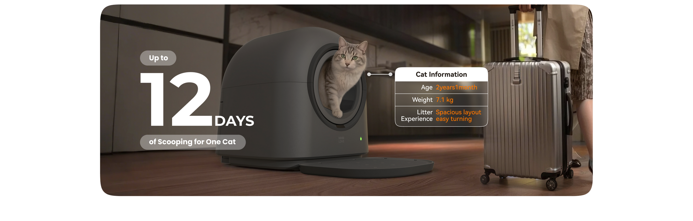 This litter box is not suitable for crystal cat litter. DO NOT fill litter above the MAX line(9lbs or less).