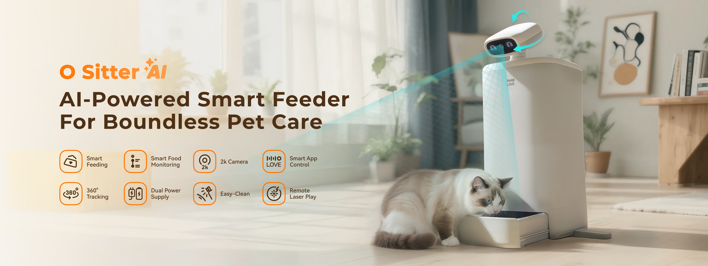 Enjoy the comfort of 2k HD video with noise reduction, giving owners the peace of mind they deserve. O Sitter's technology lets owners interact with their cats remotely, alleviating their pet's anxiety and loneliness by hearing their voice.