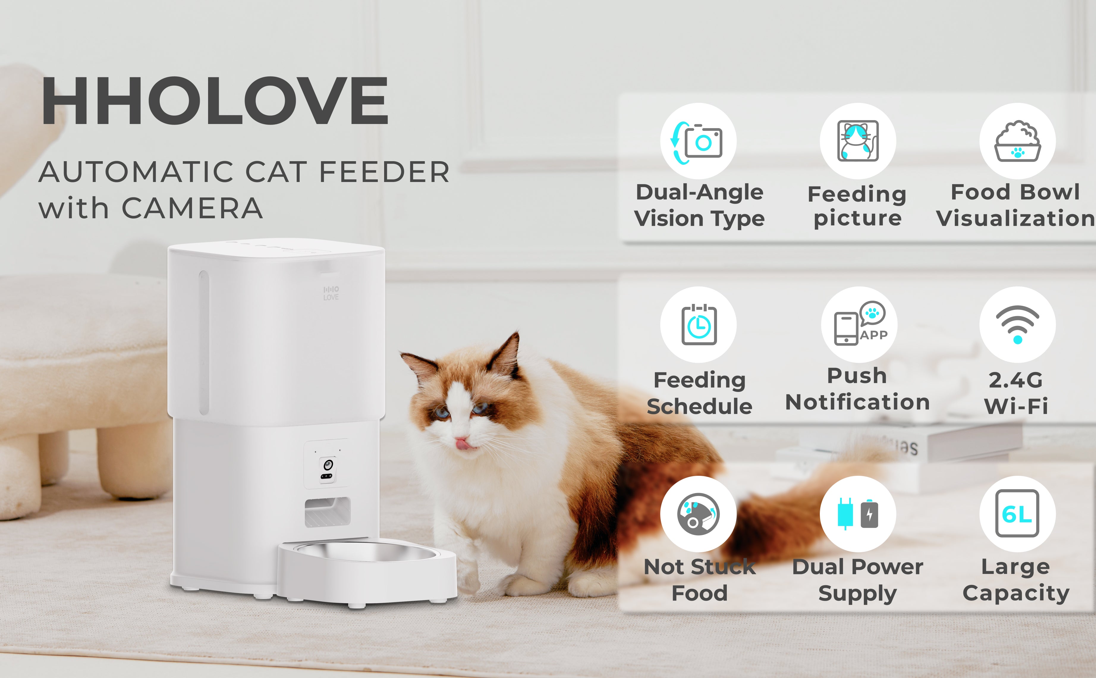 This product allows you to customize the pet's feeding plan through the HHOLOVE APP, it will take a picture of the food bowl after the food dispensing is completed and send a notification with a snapshot to the user. Also, you can check the amount of food in the food bowl whenever you want.