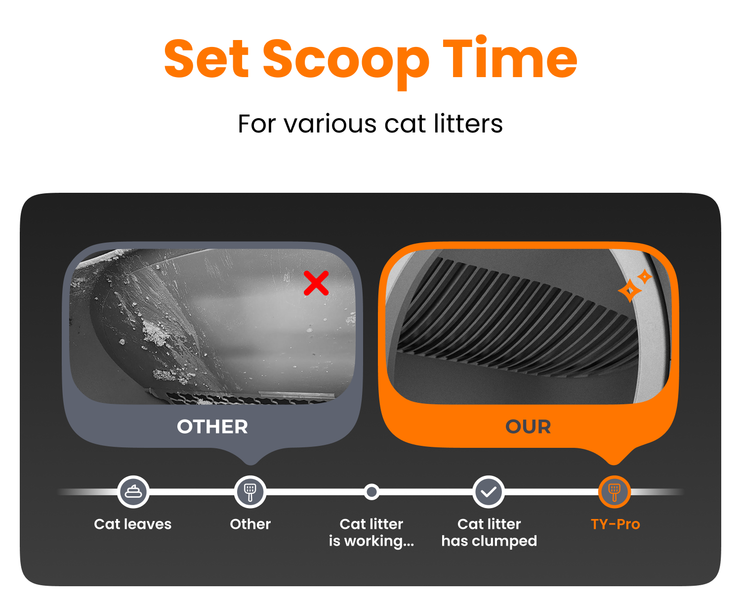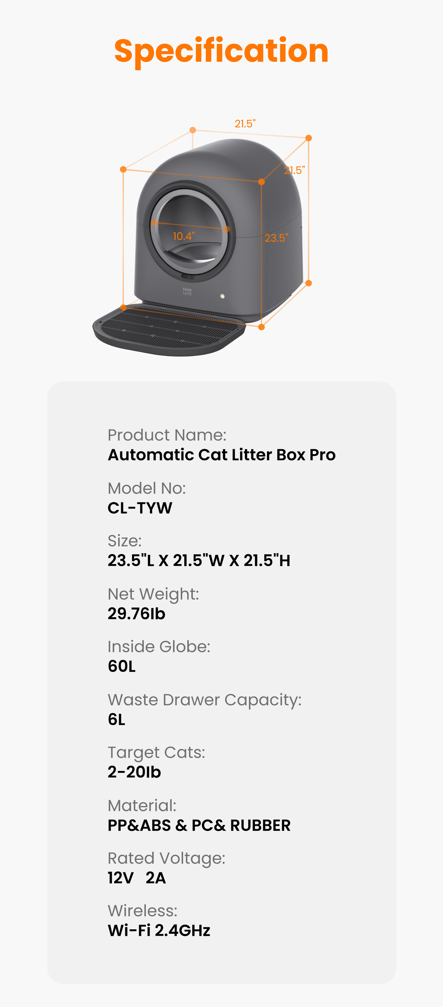 This litter box is not suitable for crystal cat litter. DO NOT fill litter above the MAX line(9lbs or less).