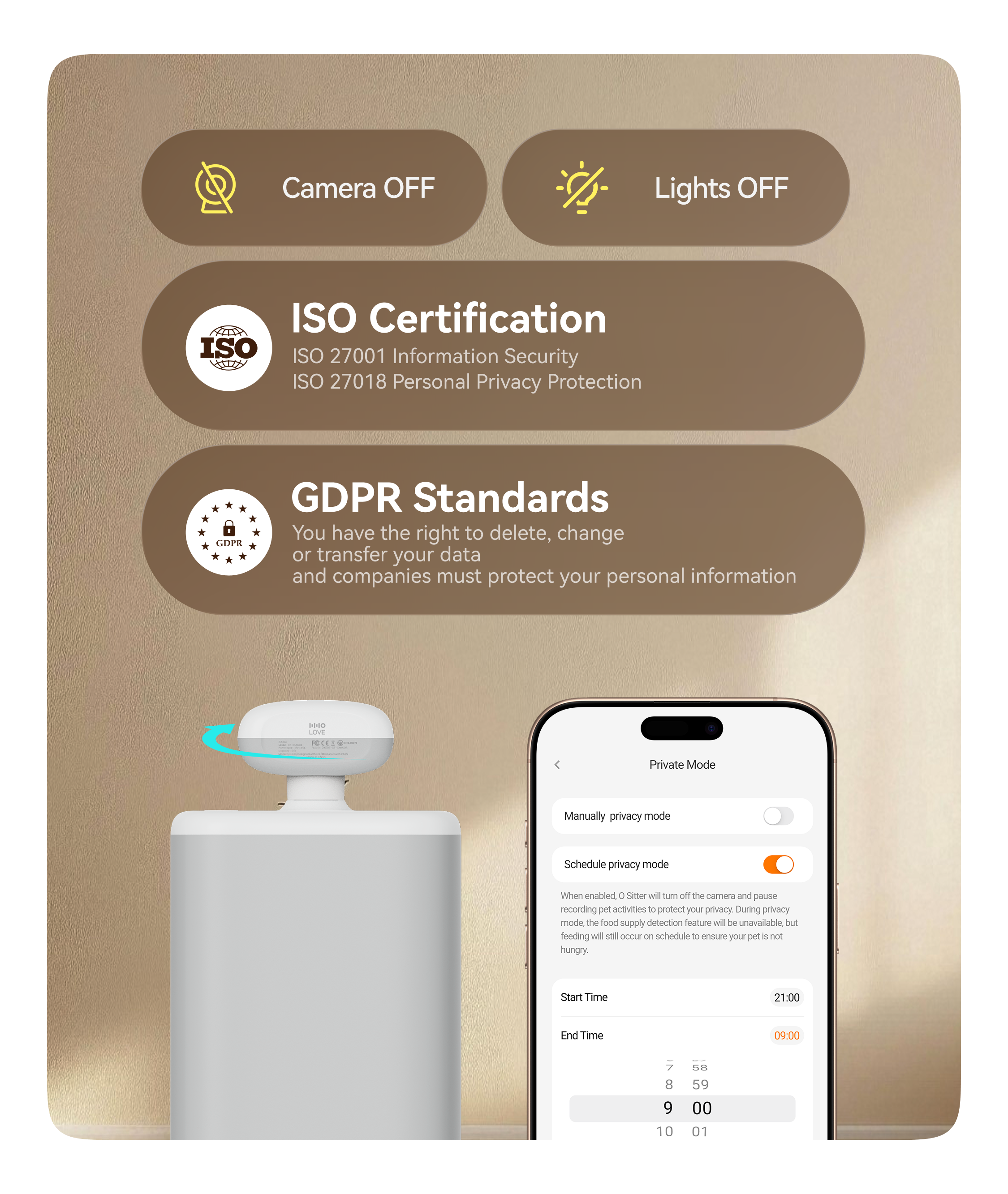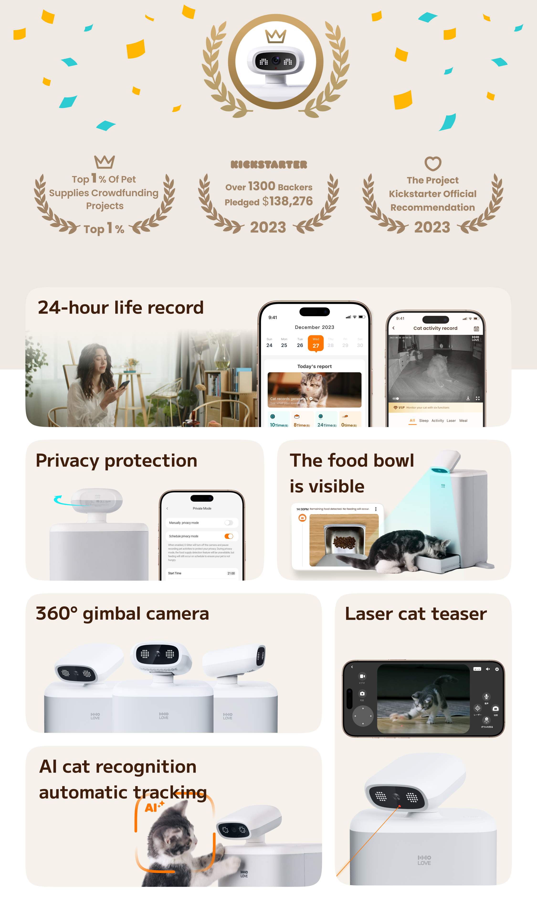 O Sitter camera can rotate 360 degrees horizontally and tilt 110 degrees vertically. Easily control the camera via HHOLOVE App and find out your cat even it hides in the corner. No matter how naughty your cat is, every moment will be captured.