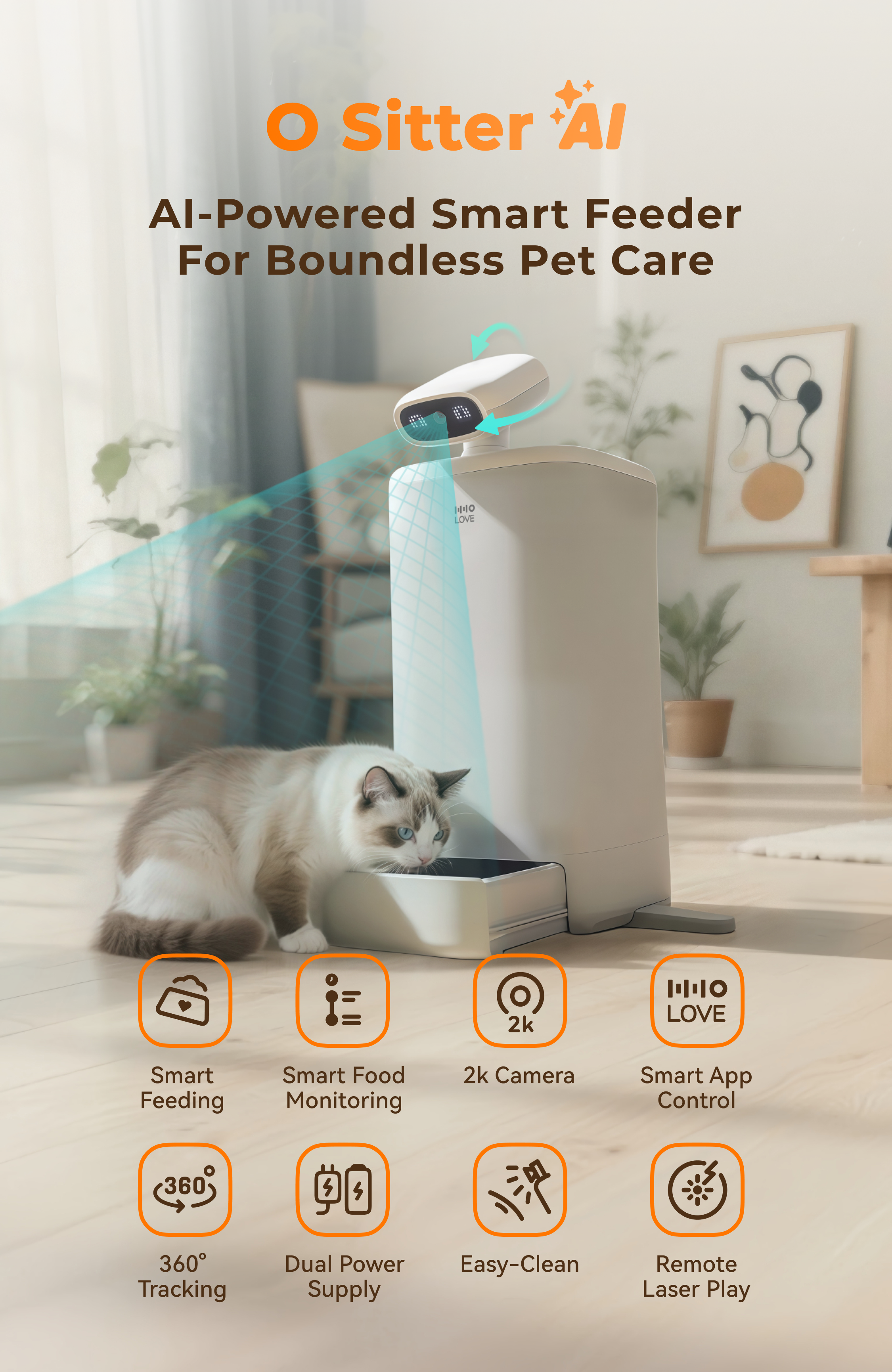 Enjoy the comfort of 2k HD video with noise reduction, giving owners the peace of mind they deserve. O Sitter's technology lets owners interact with their cats remotely, alleviating their pet's anxiety and loneliness by hearing their voice.
